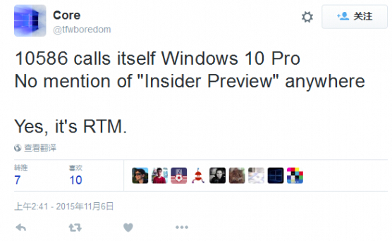 版本号为10586的 Windows 10 Insider预览版于今日正式面向快车道(Fast Ring)用户开放,项目负责人Gabriel Aul在推文中表示该版本“响应灵敏运行流畅”,并是“用户日常使用的绝佳版本”。 在近日的谣传中表明 Build 10586 将会作为Windows 10 系统的“ 秋季更新” (或者Threshold 2/TH2 )发布,但事实上可能并非如此。 尽管在官方博文中并未明确说明, 但是在推特社交网络上博主 @tfwboredom 认为,10586 版中找不到任何‘Insider Preview’ 的字样,而将自己称为Windows 10 Pro ,根据以往的做法,这一版本很有可能被微软选为RTM 版本。 Windows 10 Insider 预览 Build 10586 主要修复了: ● 任何音频播放(例如来自Groove的音乐、来自Movies&TV应用的视频)在Action Center有信息弹出的时候音量会减少75%。 ● 在Surface Pro 3按击电源键能够进行睡眠状态,而不是此前一样直接关机。 ● 根据Windows Insider成员的反馈我们修复了系统闲置后闪出disksnapshot.exe命令提示窗口的问题。 ● Windows系统将会记忆前一次登陆类型。例如,当你使用PIN码进行登陆,那么下次登陆的时候依然会优先推荐PIN码进行登陆。 ● 修复了Edge浏览器中标签预览的错误,该错误是当页面不滚动至顶部,预览和网页便签clipping就会显示黑色。 ● 针对类似于戴尔Venue 8 Pro等小尺寸设备修复循环重启和虚拟模式屏幕尺寸大于实际物理屏幕尺寸后的蓝屏情况。 ● 应用和游戏应该从更受信赖的Store进行下载。 目前已知的问题: ● 如果从现有Windows 10 Insider预览版中进行升级,在Messaging+Skype应用中会消失Skype短信和联系人。你可以在资源管理器中访问“C:Users