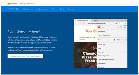 微软已经承诺,扩展来封边,虽然他们最初应该出现在今年秋天,该公司错过了最后期限。但是,它看起来像该功能将被很快会来到一个页面,详细说明了哪些扩展是在网上发现。 图像,下面,是一个截屏页面,正如你所看到的,微软并没有完全决定何时功能将抵达业内人士。现在拉到页面上的文本具有一个空白XXXXX为,将边缘的第一个版本将包含此功能的版本号。此外,该网站的FAQ部分有填充物的文字。 一对夫妇的第一个扩展的,基于页面,这将是在发布将是一个用于Pinterest的和流行的reddit的增强套件,也被称为RES。 根据该页面,在早期版本中,扩展只能手动添加。你将不得不下载这些文件,并将它们放到正确的文件夹边缘添加功能内,但它有望在最终发布,这将是一个自动化的过程。 我以前曾听说扩展边缘几乎等同于那些用于Chrome和看起来仍是如此。 H0x0d,谁抢到上面的图片,是能够下载资产数,并指出,“比较边缘的版本与浏览器版本相同的扩展,基本上取代”铬“和”msBrowser“,[和]一些小的改动。” 扩展边缘可能顶端的一个,如果不是的顶部,为浏览器请求的功能。该附加的Chrome和Firefox的功能使得这些浏览器进行定制,以消费者的喜好,并与边缘是唯一的浏览器不支持的功能,它把它在一个非常不利的地位。 该公司还没有在公开场合表示,当功能将被释放,但看到因为它们组建一个登陆页面为特征,看来,它应该到达不久。
