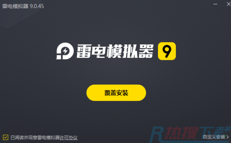 在本站下载雷电模拟器软件,解压后双击.exe文件,弹出安装界面,点击"自定义安装"选项。
